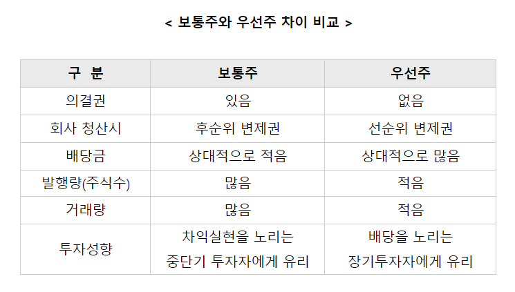 출처 https://md2biz.tistory.com/374 위의표를 참조하여 본주와 우선주의 차이점을 보면