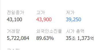 항상 높은 외인비율이 내 마음을 아프게했는데 그래도 조금떨어졌다.
