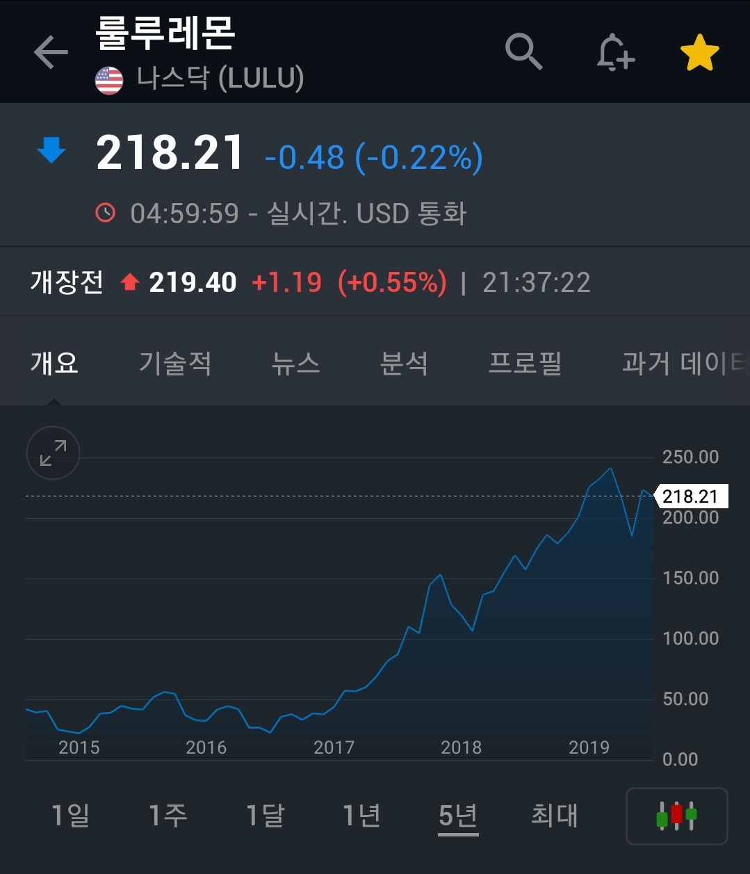 룰루레몬을 그날 처음 알게 되었다.그때가 투자의 기회였는데...